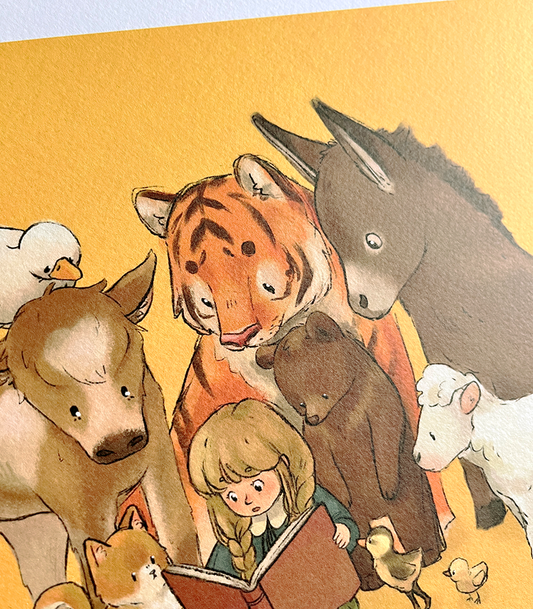 Reading to friends | A4 Art print