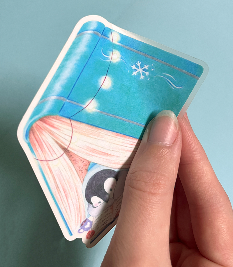 This transparent matte vinyl sticker is easy to peel off and water resistant. Perfect for on your laptop, water bottle, sketchbook, planner, notebook and so much more! Please note that the stickiness of the stickers will be affected by the type of surface it adheres to.